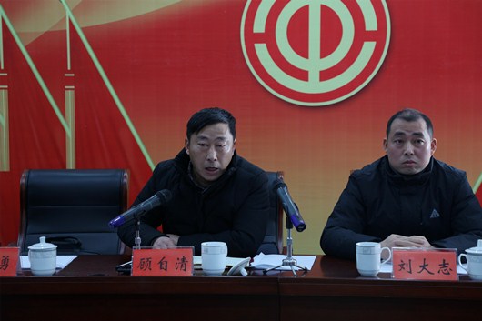 公司執(zhí)行董事、黨總支書記張勇同志宣讀區(qū)總工會批文