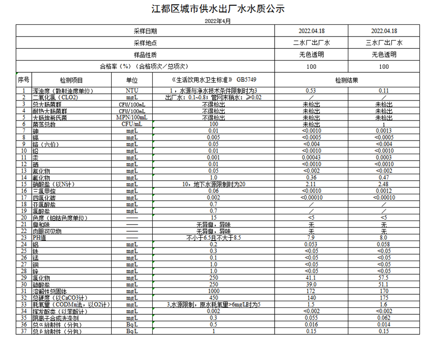 水質(zhì)公示