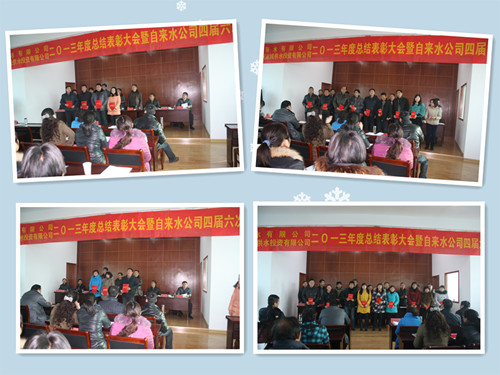 元月20日,公司召開(kāi)2013年度總結(jié)表彰大會(huì)暨四屆六次職代會(huì),會(huì)上,劉書(shū)政總經(jīng)理作了題為《銳意進(jìn)取 開(kāi)拓創(chuàng)新 共鑄江都城鄉(xiāng)供水事業(yè)新輝煌》的報(bào)告,認(rèn)真總結(jié)了2013年工作情況,具體明確了2014年目標(biāo)任務(wù),大會(huì)還組織對(duì)2013年度自來(lái)水公司、惠民公司先進(jìn)集體和先進(jìn)個(gè)人進(jìn)行了集中表彰。區(qū)城鄉(xiāng)建設(shè)局副局長(zhǎng)許金林出席會(huì)議,對(duì)公司全年工作給予了肯定,指出了公司今后工作的重點(diǎn)和努力的方向,并對(duì)廣大供水干部職工提出了殷切希望和要求。