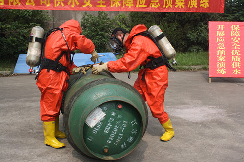 為進一步提高安全防范水平,保障夏季高峰供水,6月24日,區自來水公司根據安全生產月活動安排,在第二水廠舉行了液氯泄漏及突發性水源微污染事件應急預案演練,公司制水生產、機電維修、水質檢測等工種人員參加了演練,區域供水增壓泵站工作人員進行了全過程學習。區城建局相關部門負責人進行了現場指導,區污水處理廠和亨達水務等兄弟單位組織人員現場觀摩。