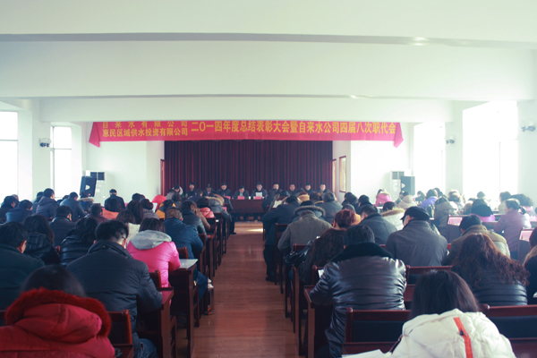 區城鄉建設局許金林副局長出席會議并作講話,在對公司2014年全年工作給予充分肯定的同時,寄語公司廣大干部職工,供水工作任重道遠、責任重大,在新的一年里,公司要在“短板、短腿”上找差距,在“軟實力、硬實力”的提高上下功夫,群策群力、努力工作,確保城鄉供水安全優質。