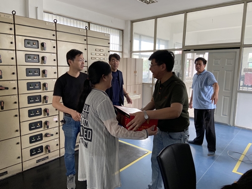 8月4日上午,在總經(jīng)理王智勇的帶領(lǐng)下,公司黨政工領(lǐng)導(dǎo)代表和相關(guān)職能部門帶著防暑降溫物品,先后深入供水生產(chǎn)、水質(zhì)化驗(yàn)檢測一線、管道施工現(xiàn)場和鄉(xiāng)鎮(zhèn)供水所、污水處理廠,集中進(jìn)行夏季高溫慰問活動(dòng),為默默揮灑汗水的一線工作者們送上清涼飲料等慰問品。王智勇總經(jīng)理每到一處都詳細(xì)詢問了他們的工作和生活情況,對大家不畏酷暑堅(jiān)守工作崗位的精神表示衷心的感謝,并叮囑他們在高溫天氣下勞作要保重身體,既要戰(zhàn)高溫斗酷暑完成本職工作,也要確保身心健康,時(shí)刻注意高溫下的安全勞作。
