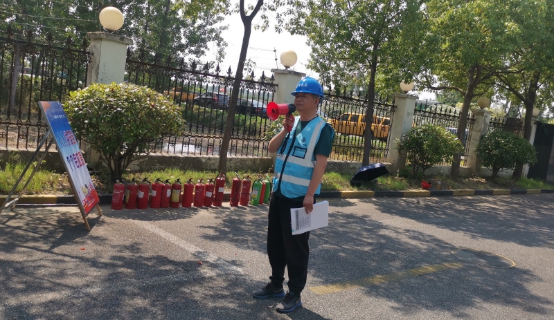 活動開始由負責人蔣珀做演練前消防安全講話,要求各部門樹立安全意識、責任意識、大局意識,學好消防知識,練好技術本領,積極參與安全培訓,宣傳落實公司安全要求,此次參與演練活動人員要個個參加,服從指揮安排,確保自身安全。安全辦主任高靜波向大家宣傳講解了日常消防安全知識及遇到火災的注意事項等,并由應急成員現場演示干粉、水基等不同滅火器的正確使用方法。由副經理吳文華宣布消防演練活動正式開始,并組織人員負責在指定地點進行點火。
