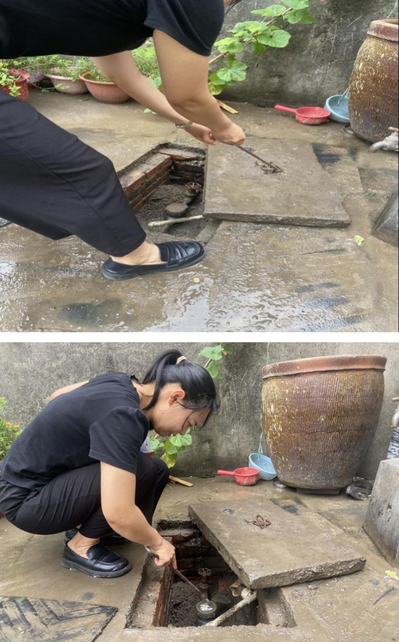 胡小娟是邵伯供水所成立初期就加入的“老員工”了,她負責的區(qū)域離鎮(zhèn)區(qū)較遠,要騎行半小時左右才能到達抄表區(qū)域,到達后停下車輛,拿起撬桿,將10多斤的厚水泥蓋撬起,雙腳跨入水表箱,將水表周邊泥土砂石清理完,表盤擦拭干凈后讀取數(shù)據(jù)、記錄數(shù)據(jù),天氣悶熱,不一會,她的后背已經(jīng)濕透,擦了擦汗又前往下一個水表點,重復著掀井蓋、清理表面、趴下看表讀數(shù)等這樣的“機械化”動作。