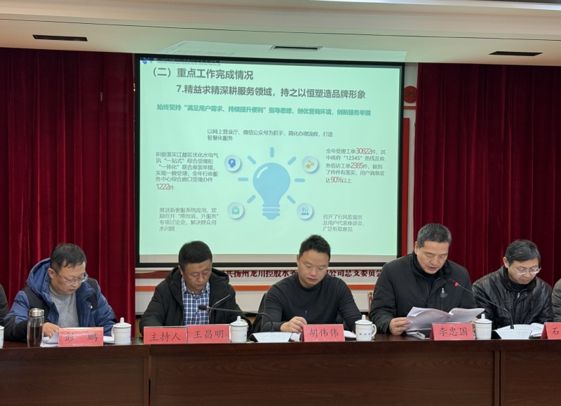 最后是本次大會(huì)的領(lǐng)導(dǎo)講話環(huán)節(jié),龍川控股集團(tuán)副總兼水務(wù)公司董事長(zhǎng)胡偉偉同志作重要講話,在向2024年度所獲先進(jìn)集體和個(gè)人表示祝賀和充分肯定水務(wù)公司過(guò)去一年所取得的成績(jī)的同時(shí),主要就如何開(kāi)展好2025年工作提出了三個(gè)方面的具體要求:一是要保持“跳起來(lái)摘桃子”的拼勁。要把思想的發(fā)條擰得更緊、工作舉措謀劃得更實(shí)。二是要保持“挺直身敢擔(dān)當(dāng)”的闖勁。不斷增強(qiáng)企業(yè)實(shí)力、強(qiáng)健發(fā)展后勁,推動(dòng)水務(wù)公司跨越式新發(fā)展。三是要保持“沉下心抓落實(shí)”的韌勁。緊盯年度目標(biāo),聚焦工作重點(diǎn)、難點(diǎn),聚力供排水安全穩(wěn)定、提升對(duì)外服務(wù)滿意度,確保高質(zhì)量完成年度任務(wù)。同時(shí)號(hào)召全體水務(wù)員工以更加寬廣的視野、更加有力的行動(dòng),干在實(shí)處,走在前列,同心協(xié)作,聚力攻堅(jiān),為實(shí)現(xiàn)水務(wù)公司的新跨越、新發(fā)展做出更大的貢獻(xiàn)!